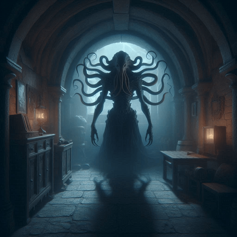 Arace drew his sword and slashed at the creature, wounding it badly. However, the creature seemed to have a purpose and did not let go of Reuben. The tentacled monster sent a blast of psychic energy at Arace, knocking him to the ground. Its voice penetrated Arace’s mind, commanding him to leave the room. Despite his desire to disobey, Arace found himself turning and leaving the room, closing the door behind him. He could hear Reuben’s screams but was unable to will himself back inside.