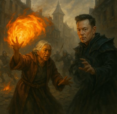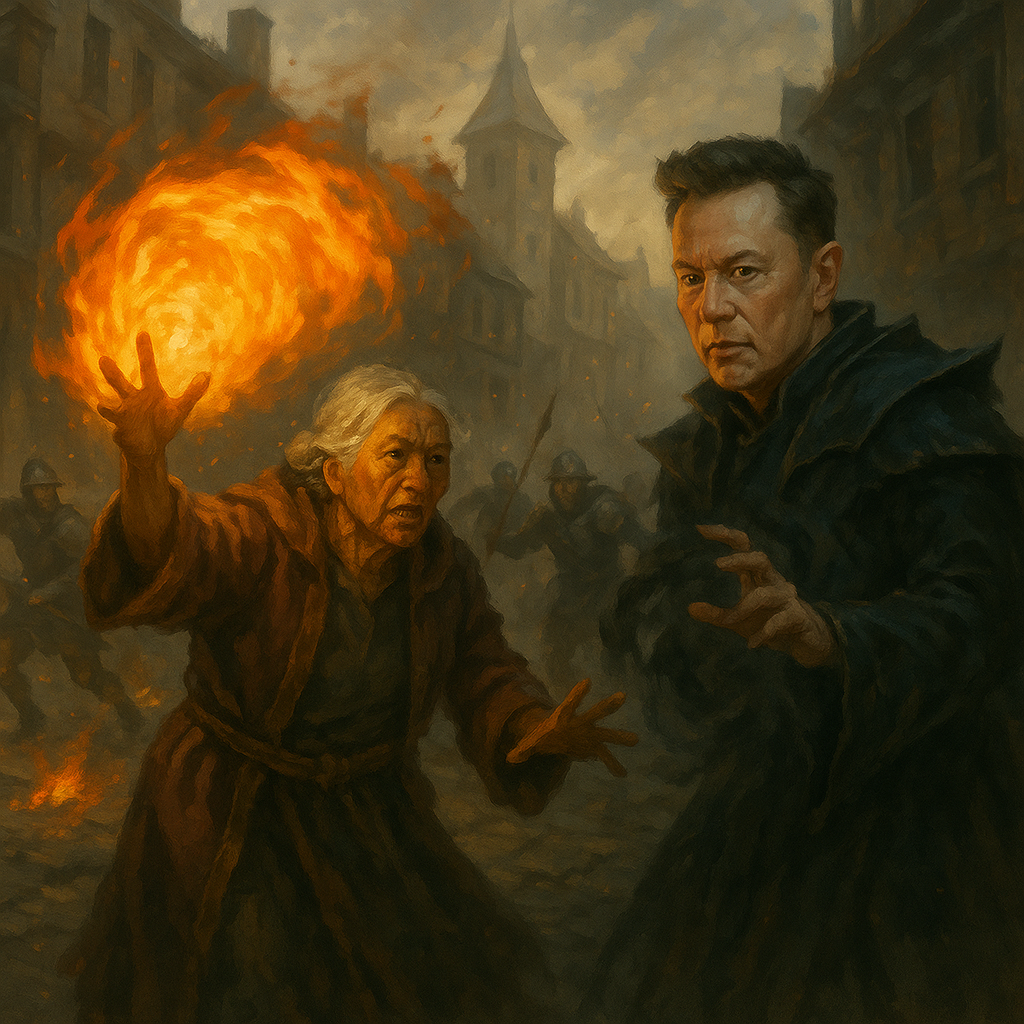 Maribel, revealing herself as one of the founders of the Dharetti underground, moved swiftly. She launched a surprise attack on Muskelon’s forces, detonating a fireball in the town square—a blazing signal that the revolution had begun.