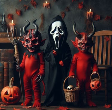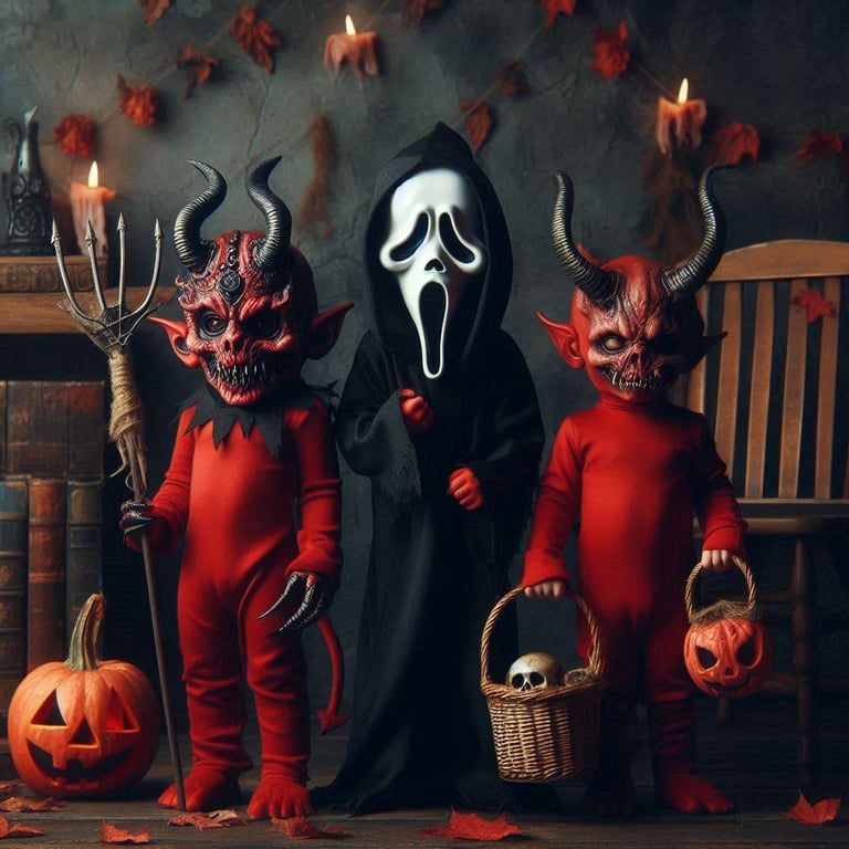 Later that night, a soft knock echoed through the wooden door to Morthos's cabin. Morthos, fatigued from the day's events, decided to ignore it and turned over in his bunk. Moments later, Norbert heard a knock at his door. Curious, he opened it to find three small children wearing elaborate costumes, cheerfully chanting "trick or treat." Before Norbert could react, more children appeared in the hallway, knocking on other doors. When the group members didn’t produce any candy, the children’s demeanor shifted menacingly. Suddenly, their true forms were revealed as demons, and they attacked.